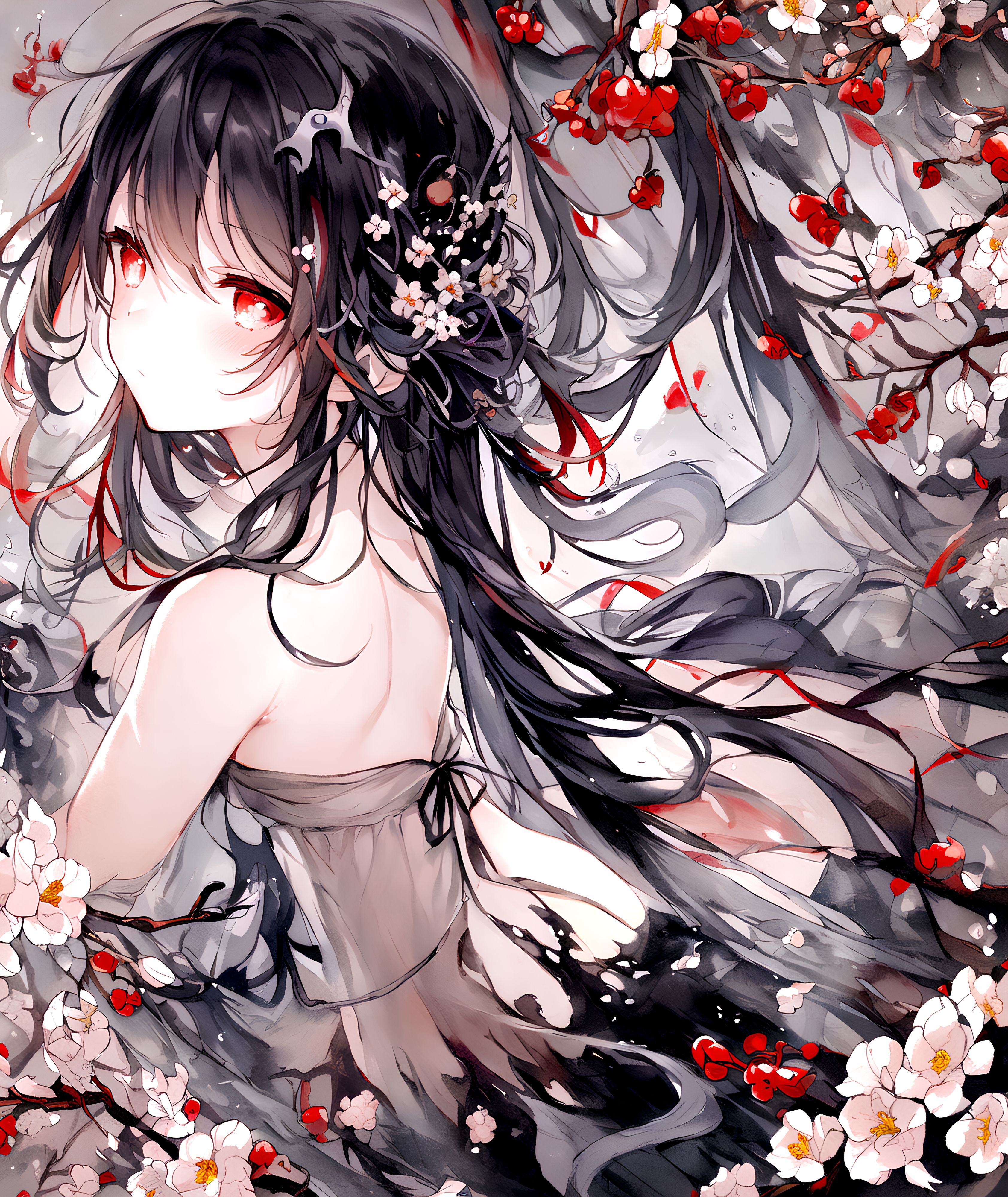 古风胡桃 原神 红眼睛 黑色长发