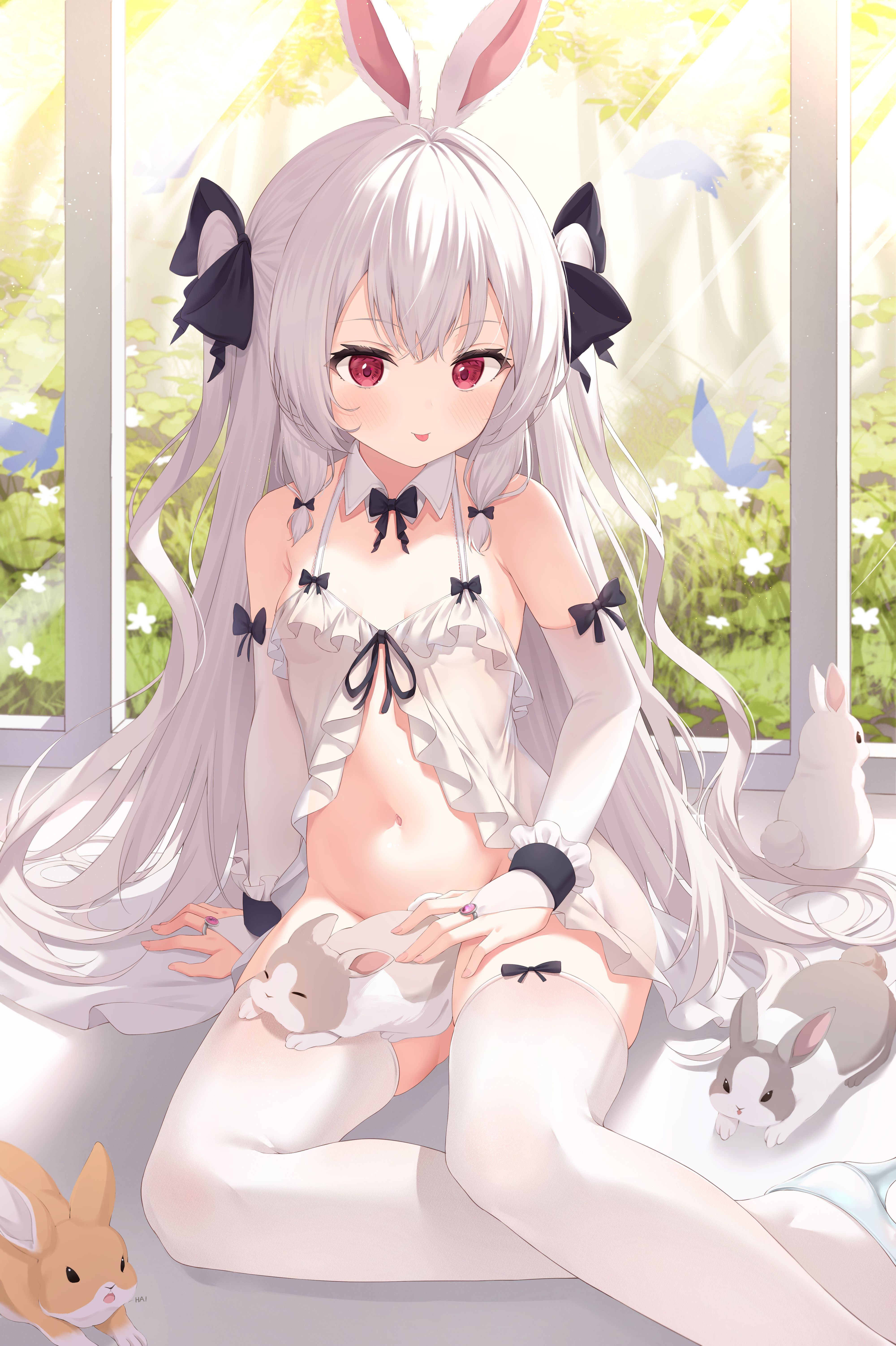Pid:104128172白发 兔耳 红眼睛 白丝