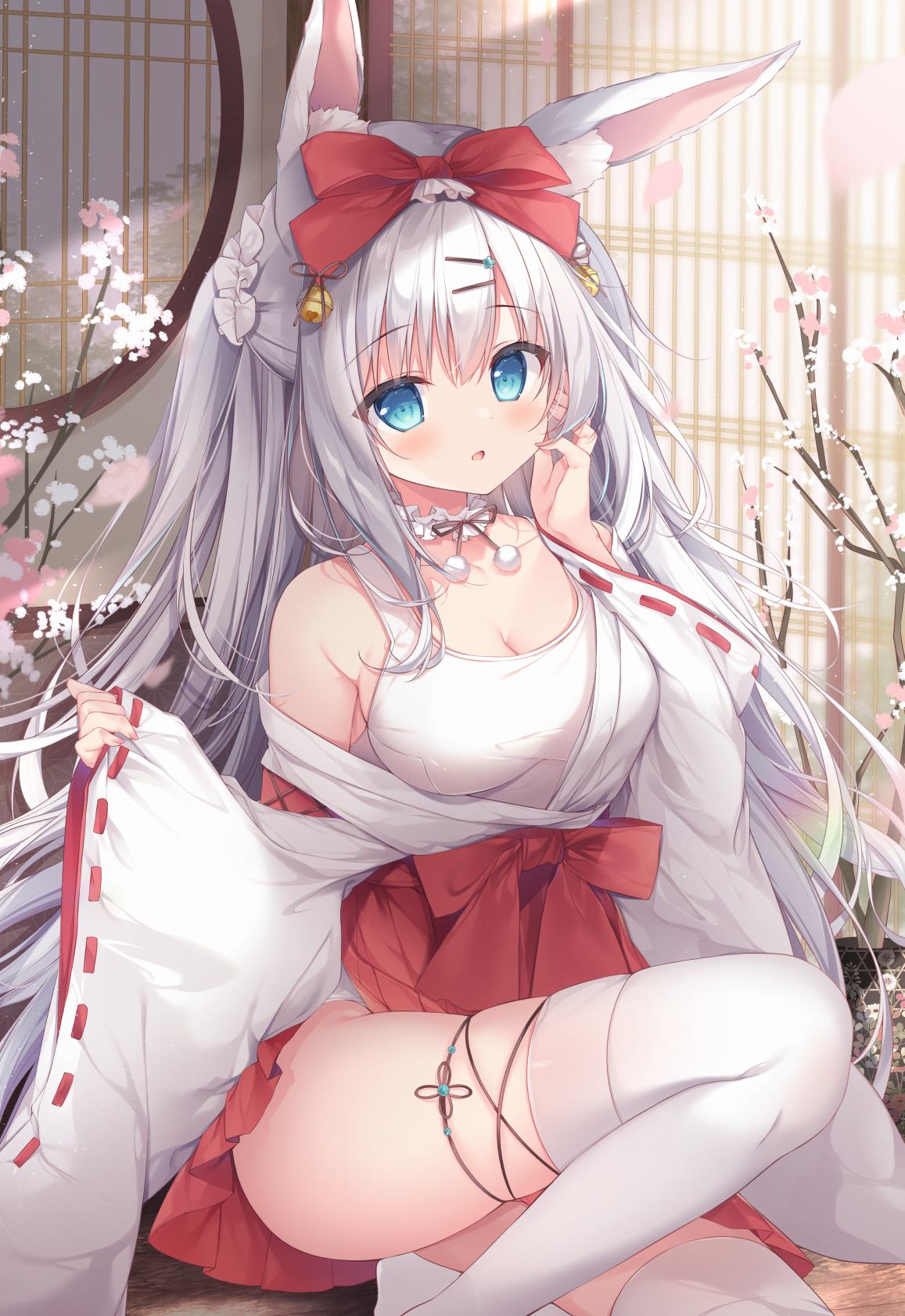 巫女服 兔耳 白发 蓝眼睛