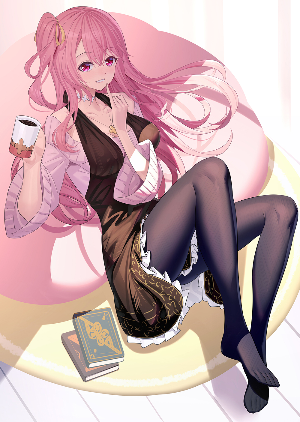 粉色头发 黑裤袜 红眼睛