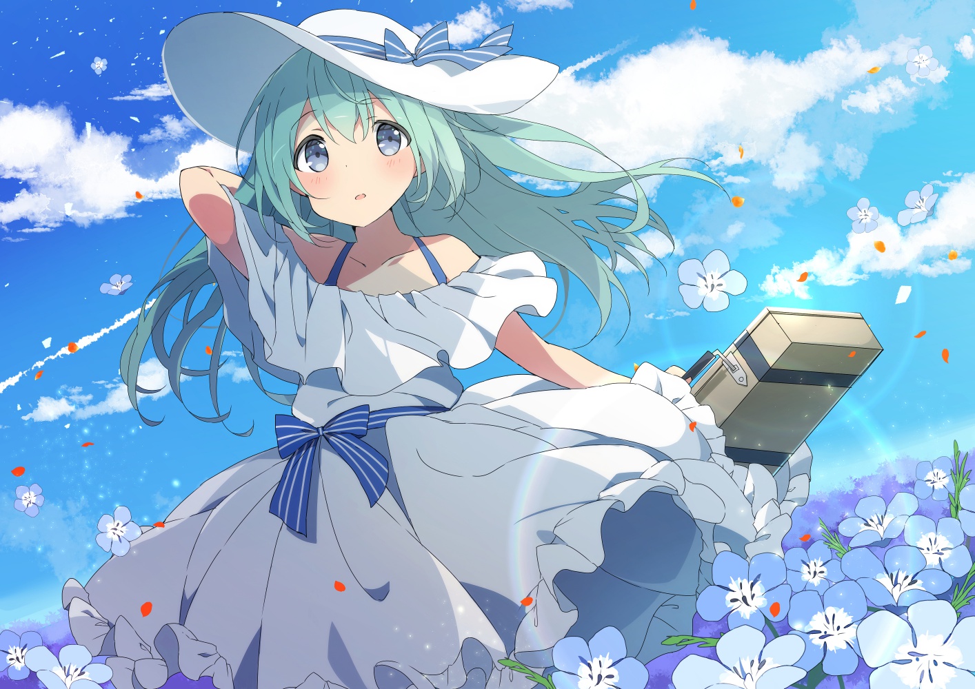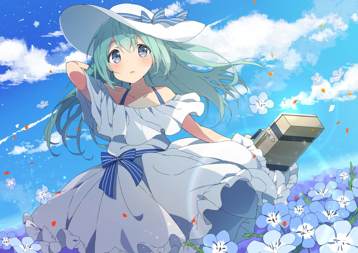 女孩子 白色连衣裙 花和女孩子 连衣裙
