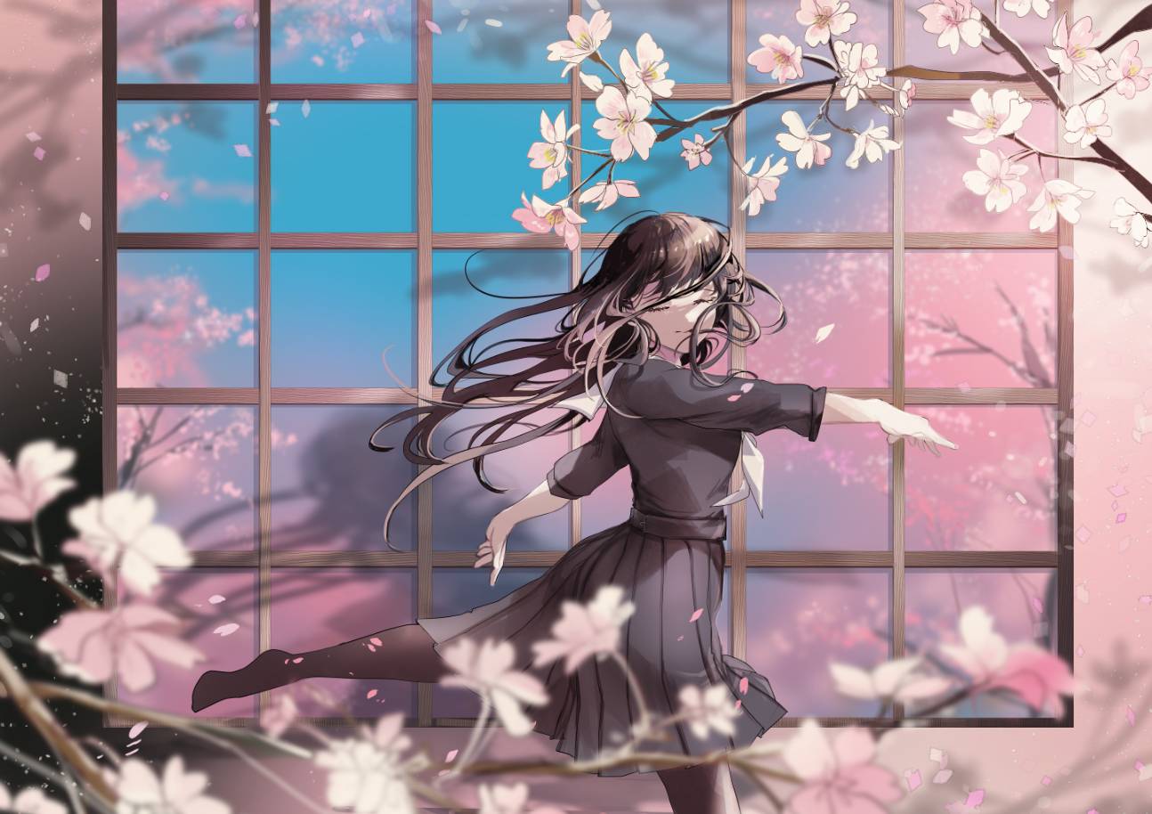 樱 黑色水手服 芭蕾 花和女孩子