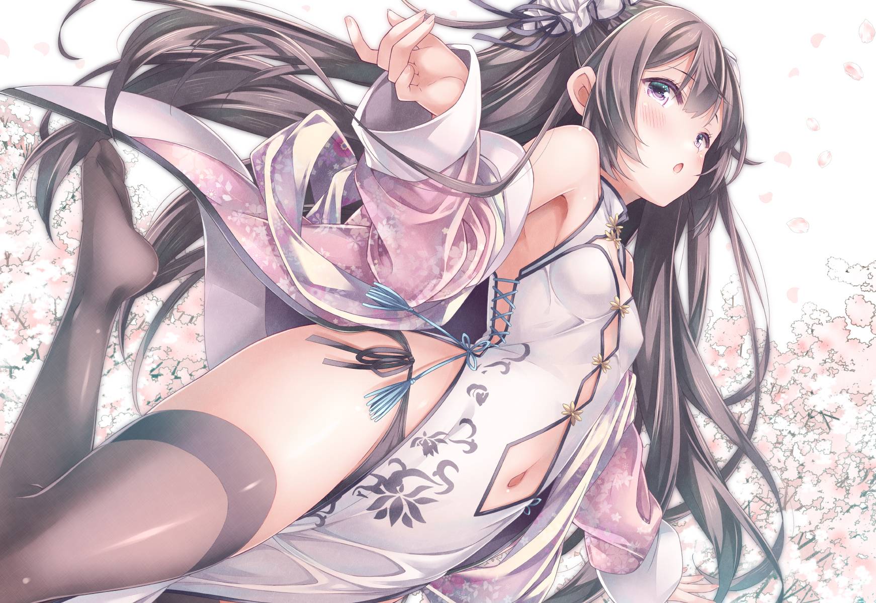 女孩子 中国服装 过膝袜 肚脐