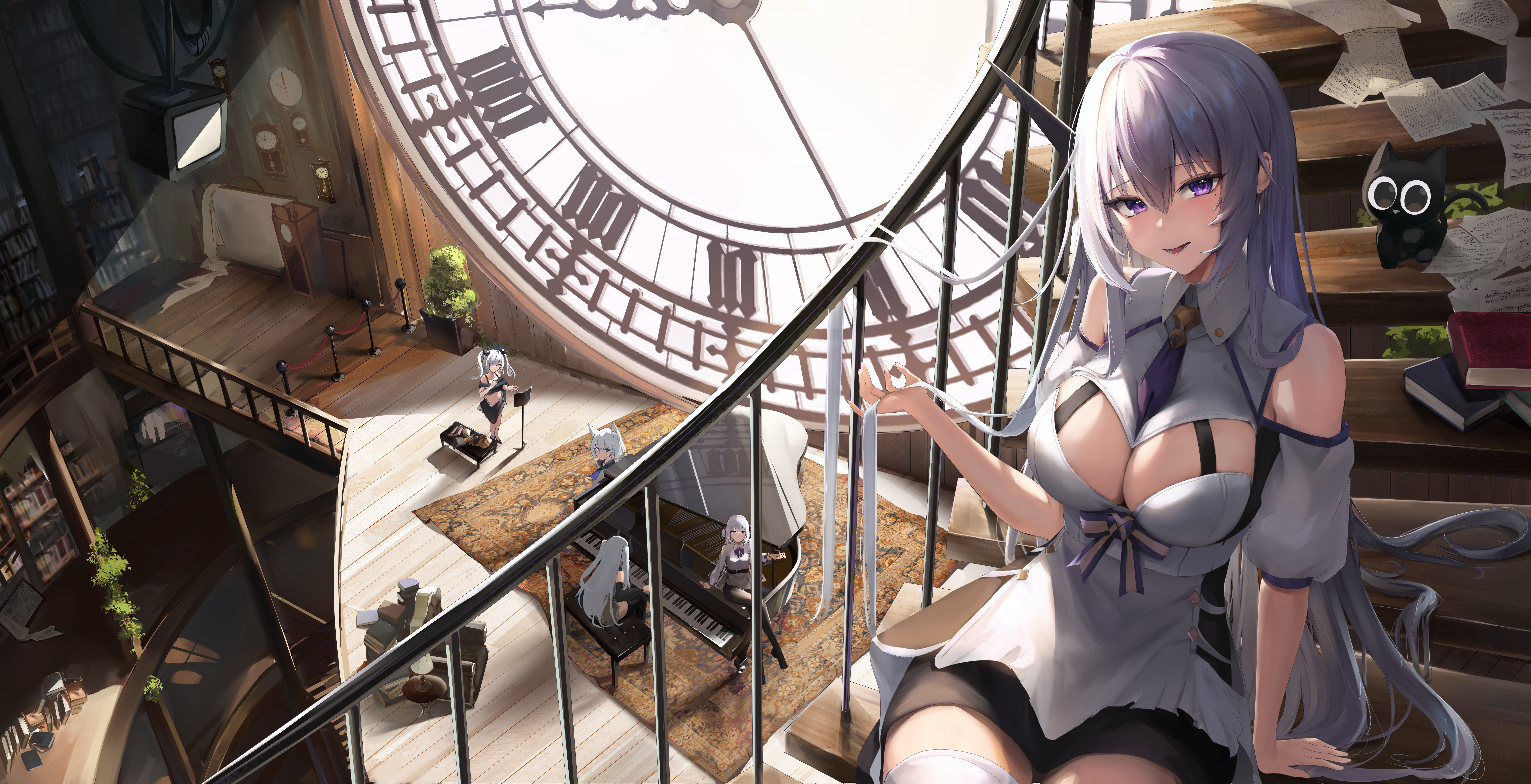 女孩子 银色长发 黑猫
