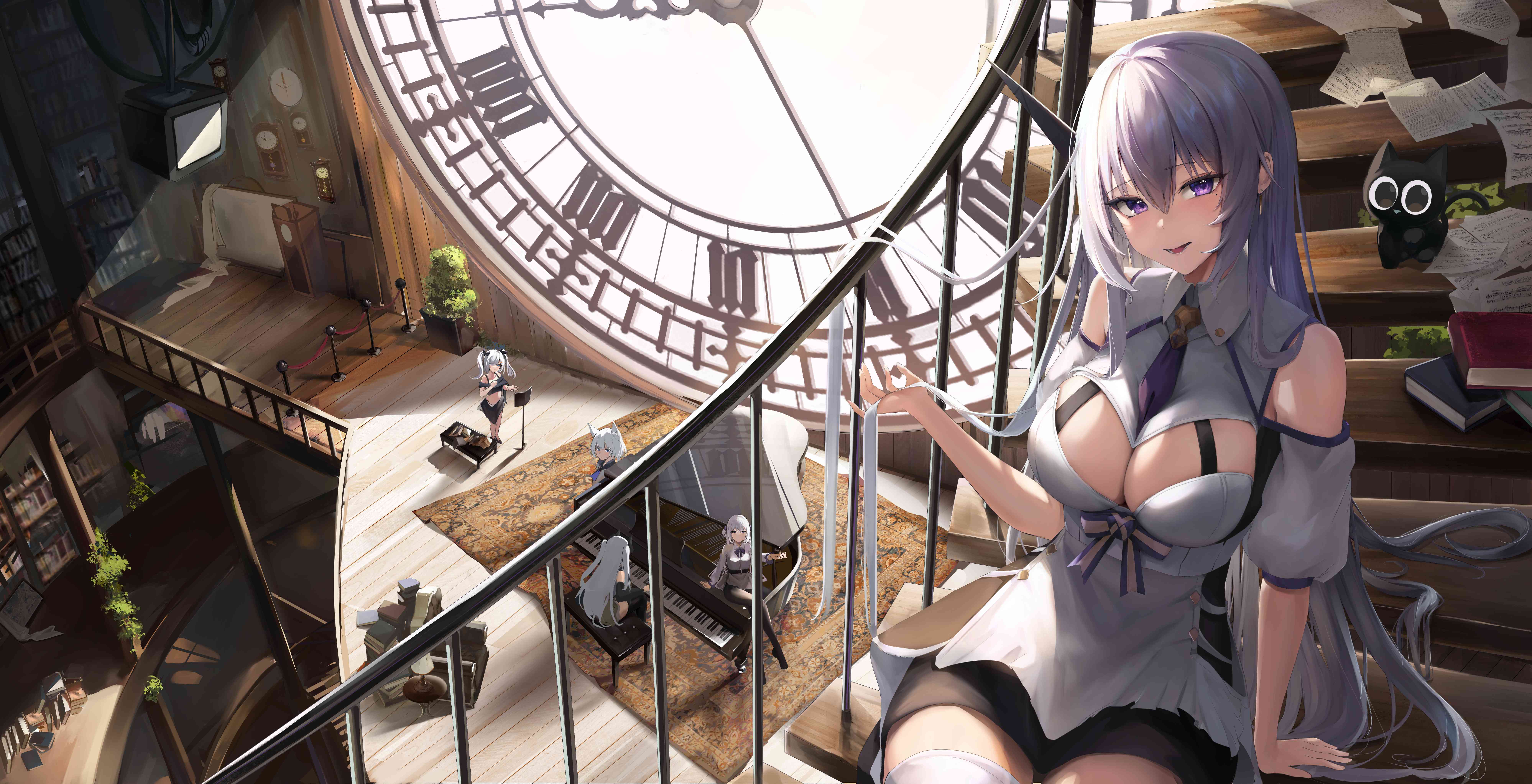 Pid:105174410女孩子 银色长发 黑猫