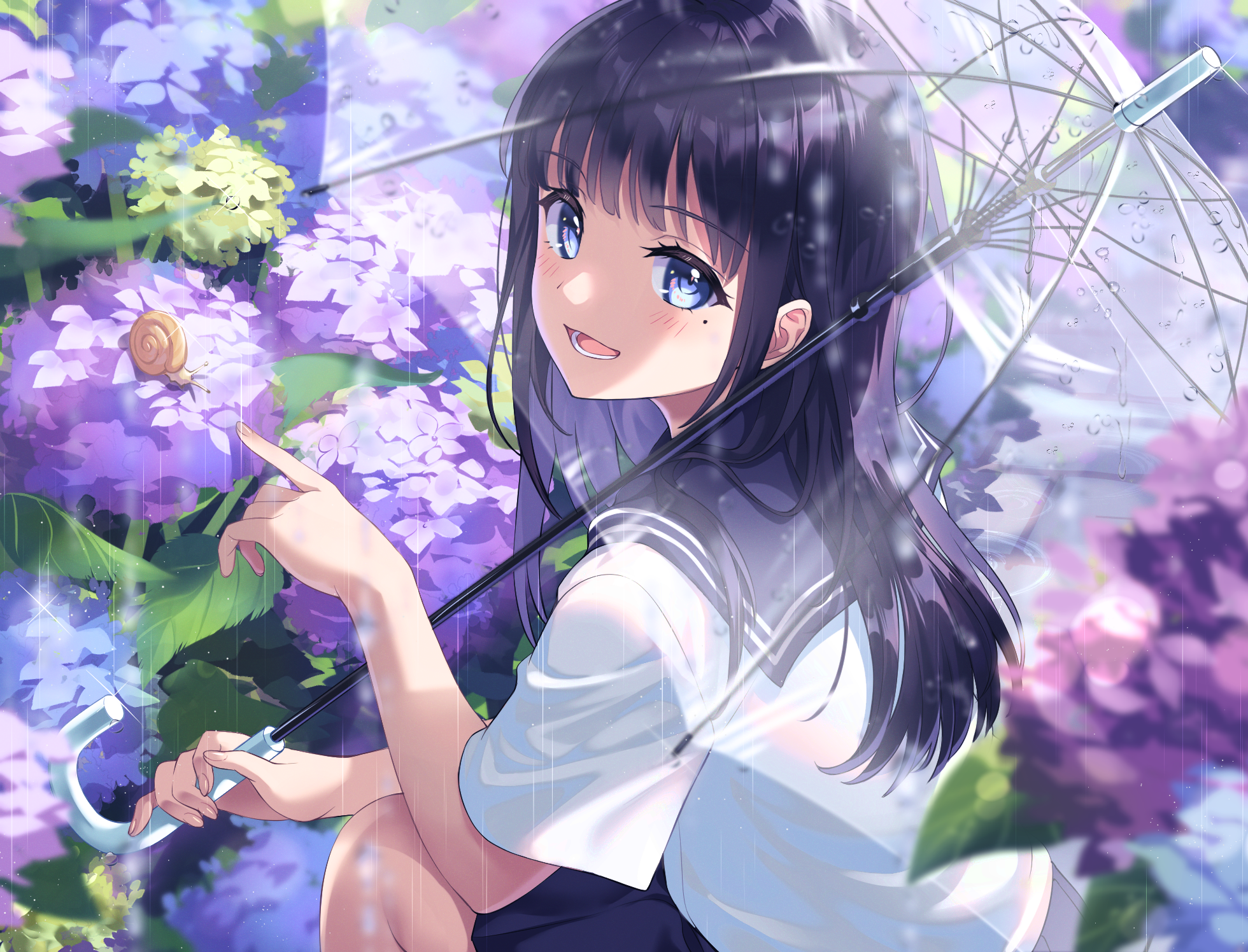 女孩子 透明伞 女高中生 紫阳花 水手服