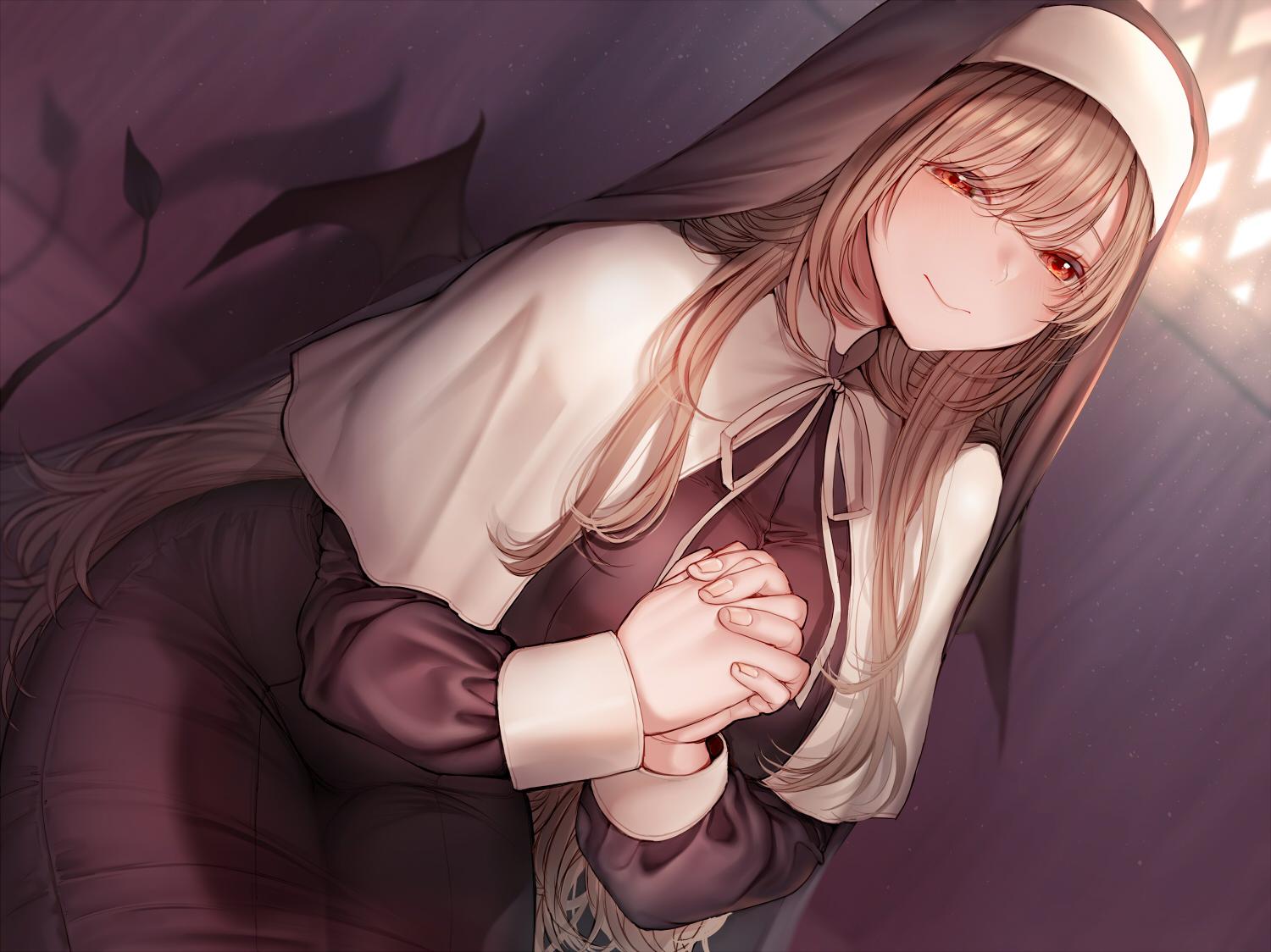 小恶魔 修女 金发 尾巴 黑色连衣裙