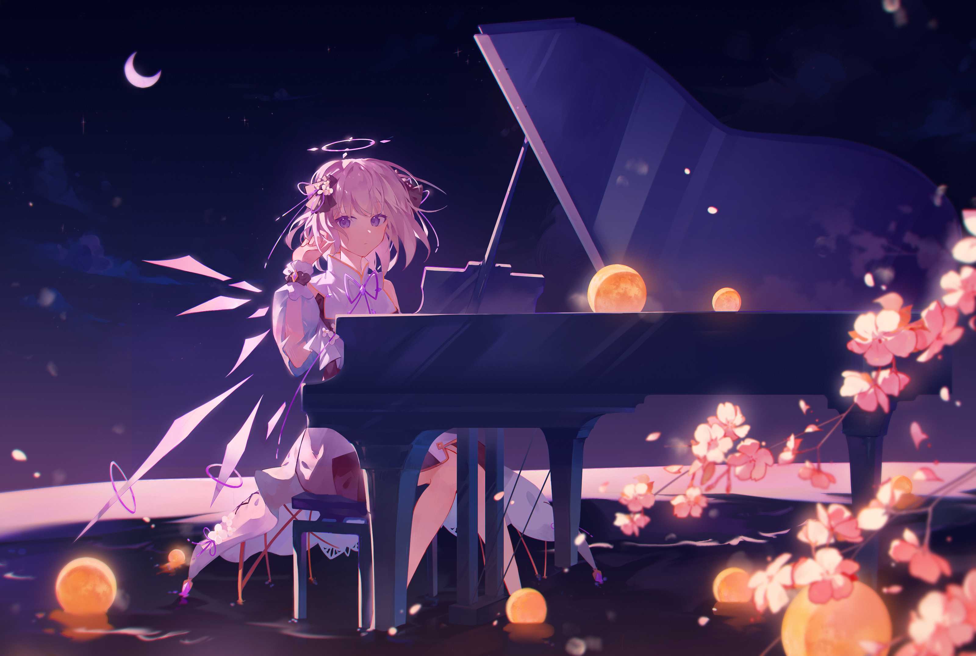 插画 女孩子 钢琴